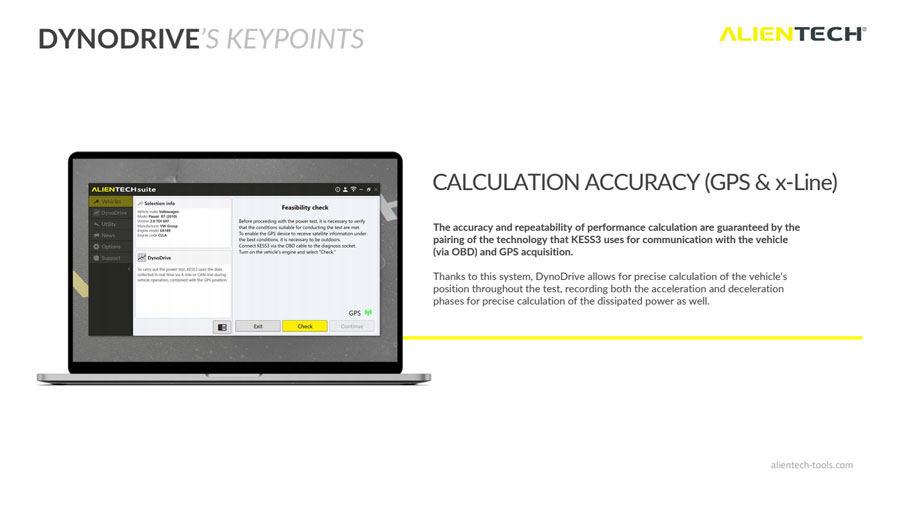 dynodrive هي فريدة من نوعها ميزة متقدمة من جناح alientech و kess3 ، مما يتيح حساب والتحقق من الأداء أثناء القيادة .من خلال منفذ OBD التشخيص وجمع البيانات من وحدة النظام العالمي لتحديد المواقع المتكاملة ،