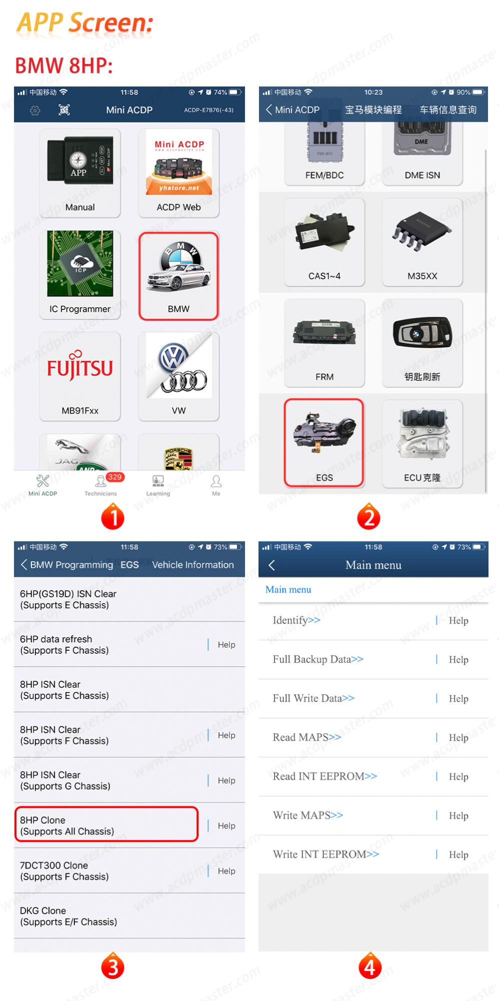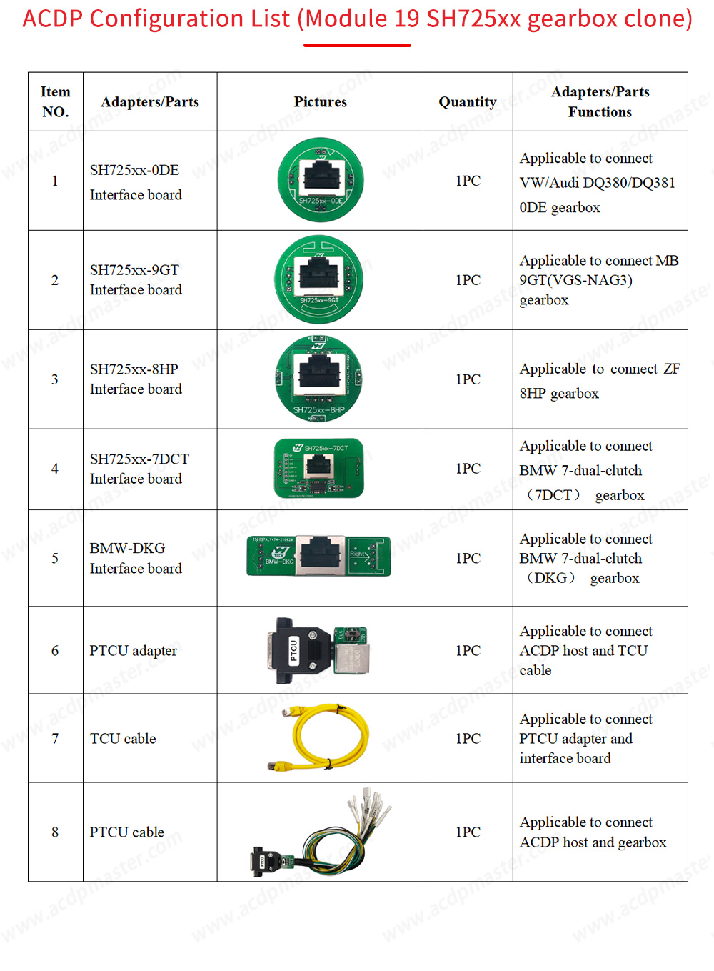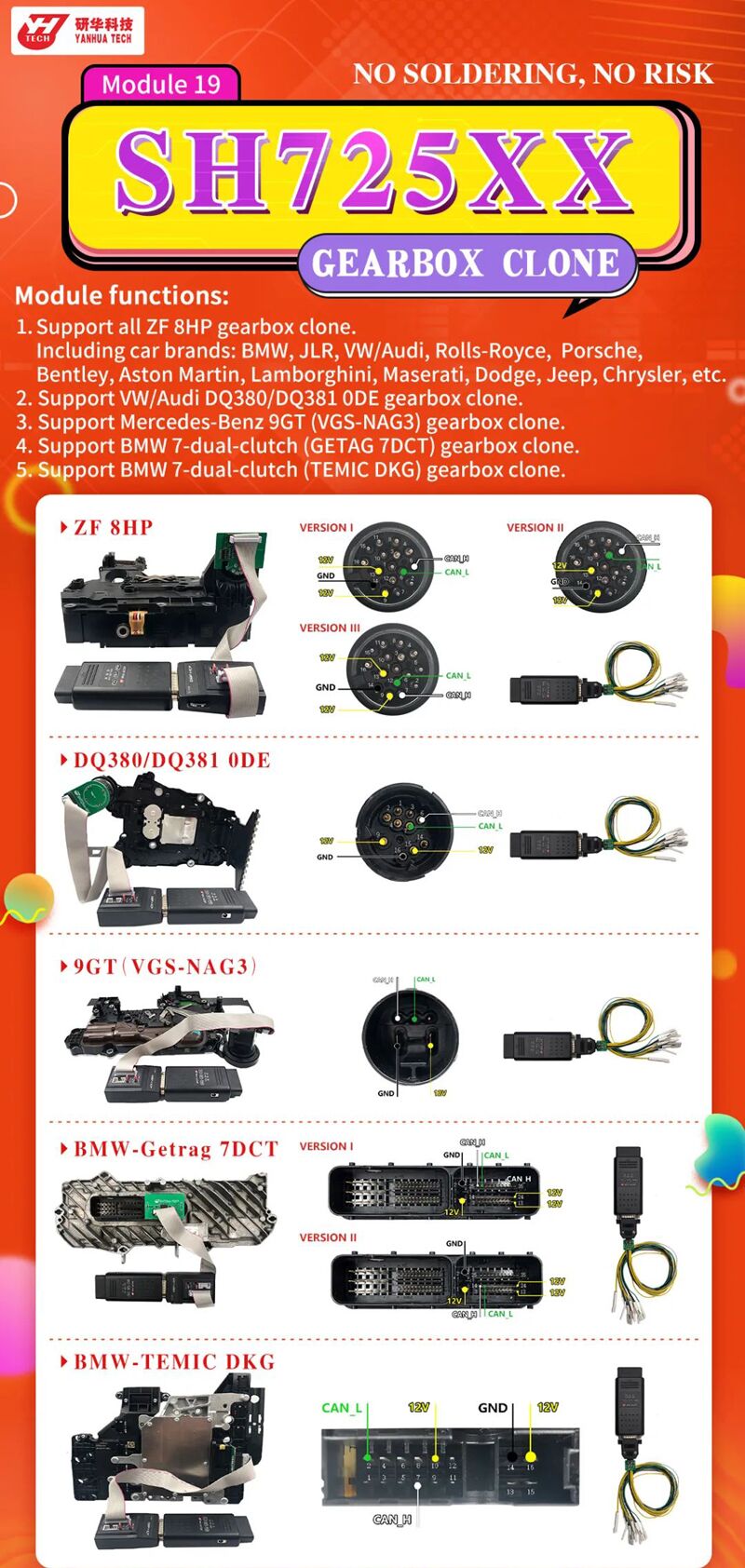 دعم جميع zf8hp dq380 / dq3810de , ميغابايت vgs-nag3 ، بي ام دبليو getag 7dct و بي ام دبليو temic dkg انتقال الاستنساخ .