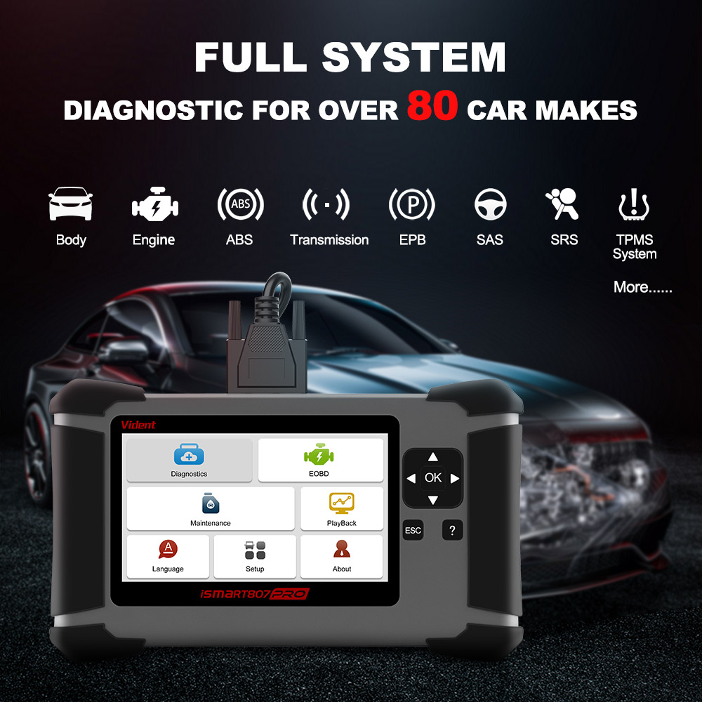 Vident iSmart807Pro ist ein professionelles Diagnosewerkzeug, das umfassende Systemabdeckung für eine Vielzahl von Automobilherstellern bietet.Ausgestattet mit allen Systemdiagnosen einschließlich Motor, Getriebe, ABS, Airbag, Instrument, Lenkrad, etc., und den am häufigsten erforderlichen Servicefunktionen OIL, EPB, SAS, BRT, ABS&SRS Diagnose, TPA (TPS), TPMS, DPF, ODOMETER, Einspritzcodierung, Getriebelernen.VIDENT ISMART807PRO wurde entwickelt, um Ihre Diagnoseerfahrung auf ein neues Niveau zu heben.