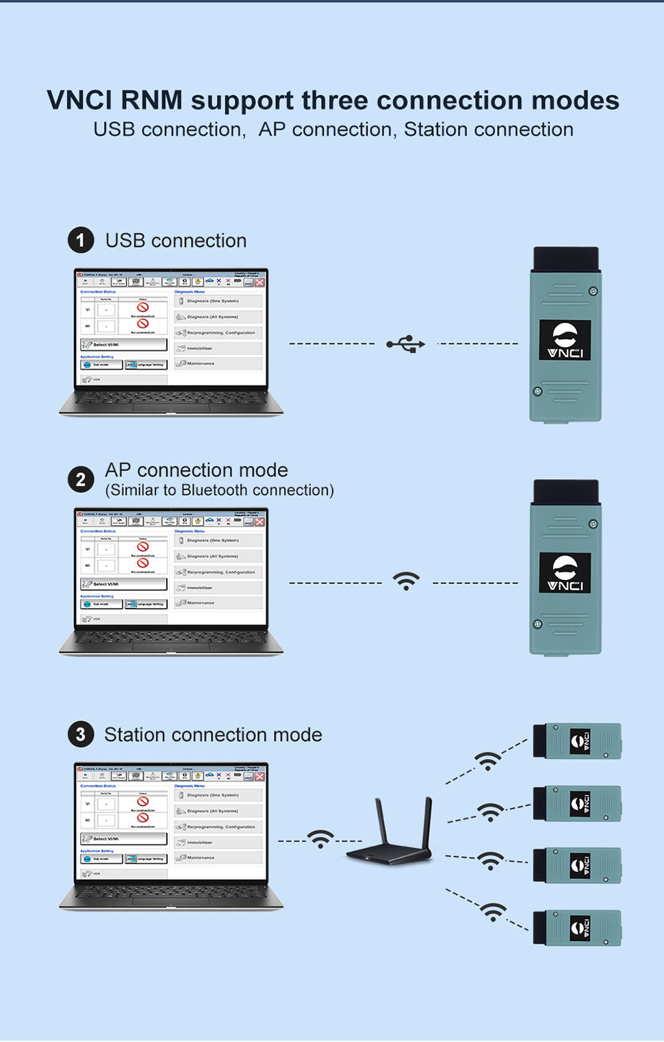 VNCI RNM unterstützt drei Verbindungsmodi: