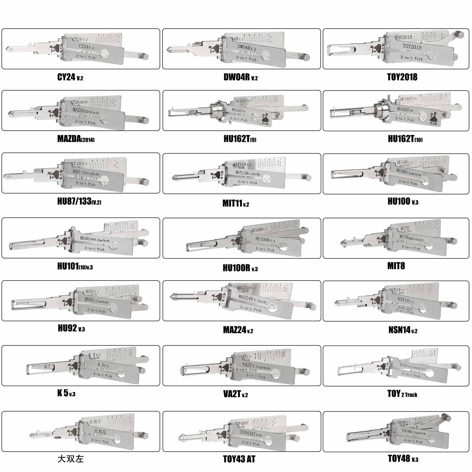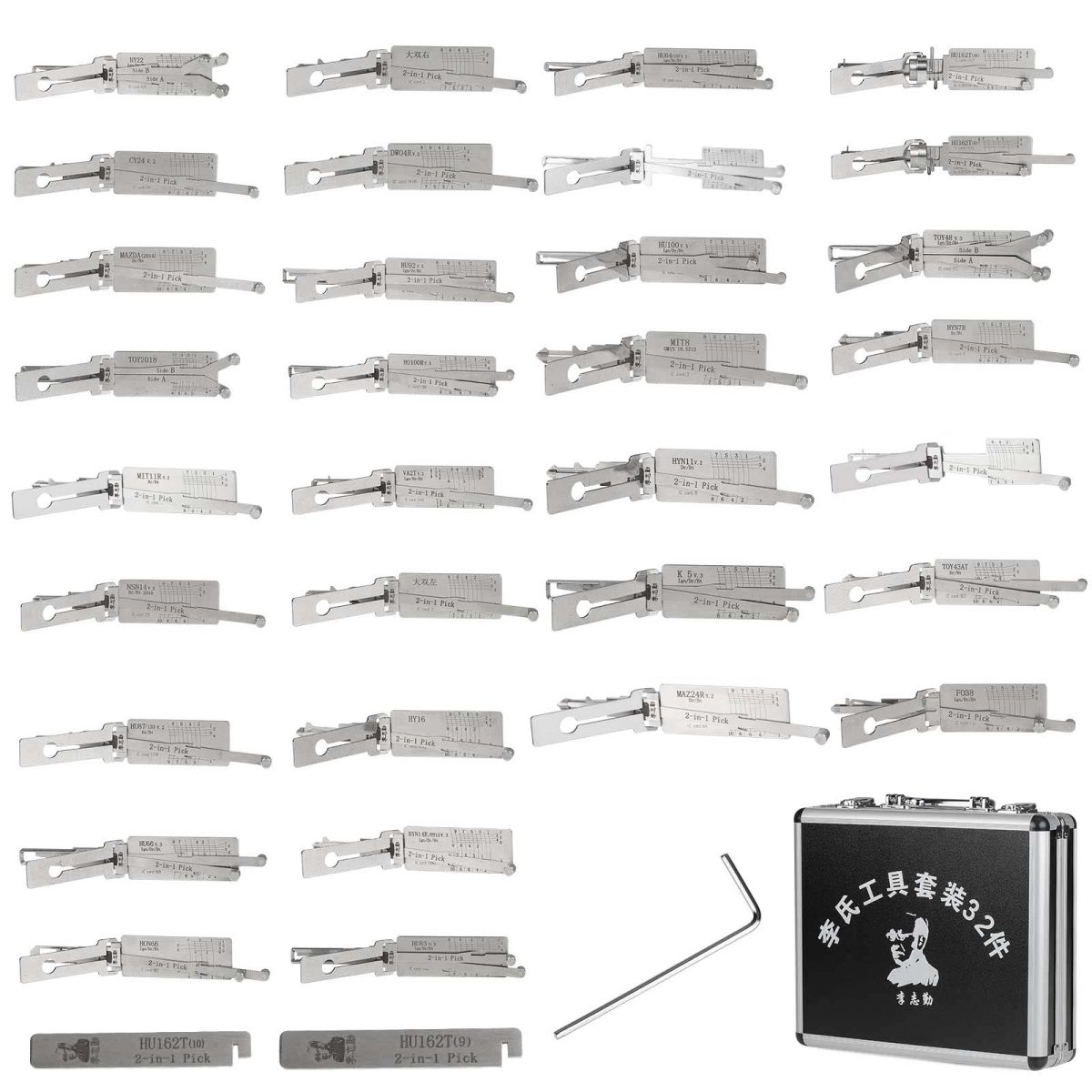 Original Lishi 32 piezas / juego de herramientas de cerrajero de descodificador de dos en uno para cerraduras de puertas de automóviles