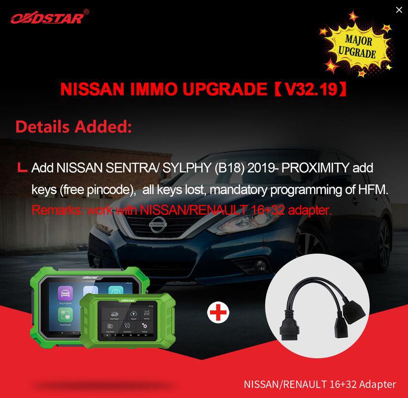 Los adaptadores obdstar 16 + 32 para el trabajo de Renault y Nissan X300 DP plus aplican en sus pasarelas Nissan sylphy / sentra, Renault Clio V / New captur / zoe2 para agregar claves, perder todas las claves y programar en ecu.