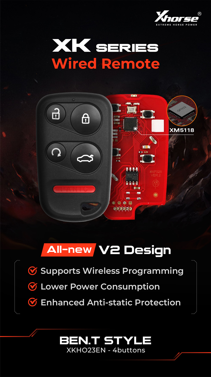 Motor Ben de 5 piezas X xhorse xkho23en.Control remoto por cable en forma de T 4 botones control remoto universal de segunda generación