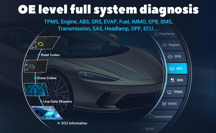 1. todos los diagnósticos del sistema de nivel oe:Lea todos los tipos de DTC del sistema completo, vea, dibuje y registre los datos eip, admita control bidireccional, inicie la prueba y todas las demás funciones de diagnóstico.