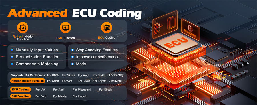 Codificación avanzada de ECU que admite marcas como volkswagen, Mercedes – benz, mitsubishi, ford, Lincoln y mazda.