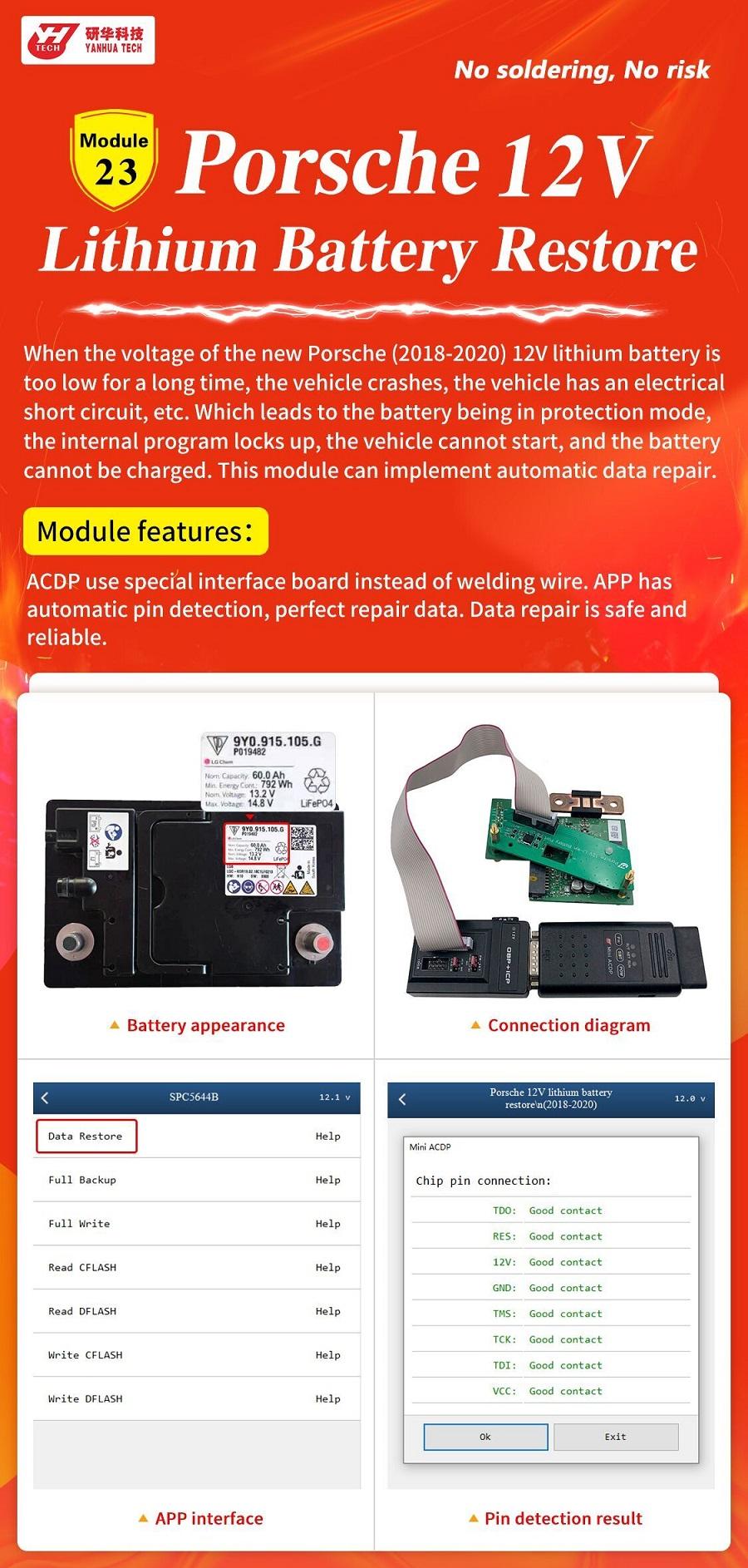 Yanhua mini módulo Acdp 23 para la recuperación de baterías de litio de 12v de Porsche