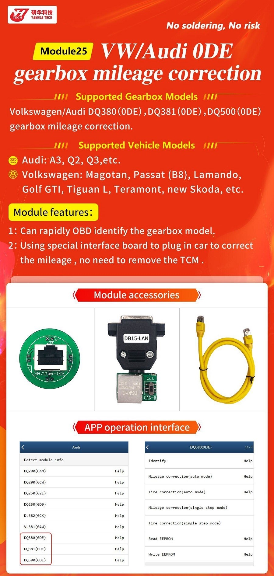 Soporte para la corrección de kilometraje de las cajas de cambios VW / Audi dq380 (0de), dq381 (0des) y dq500 (0des).