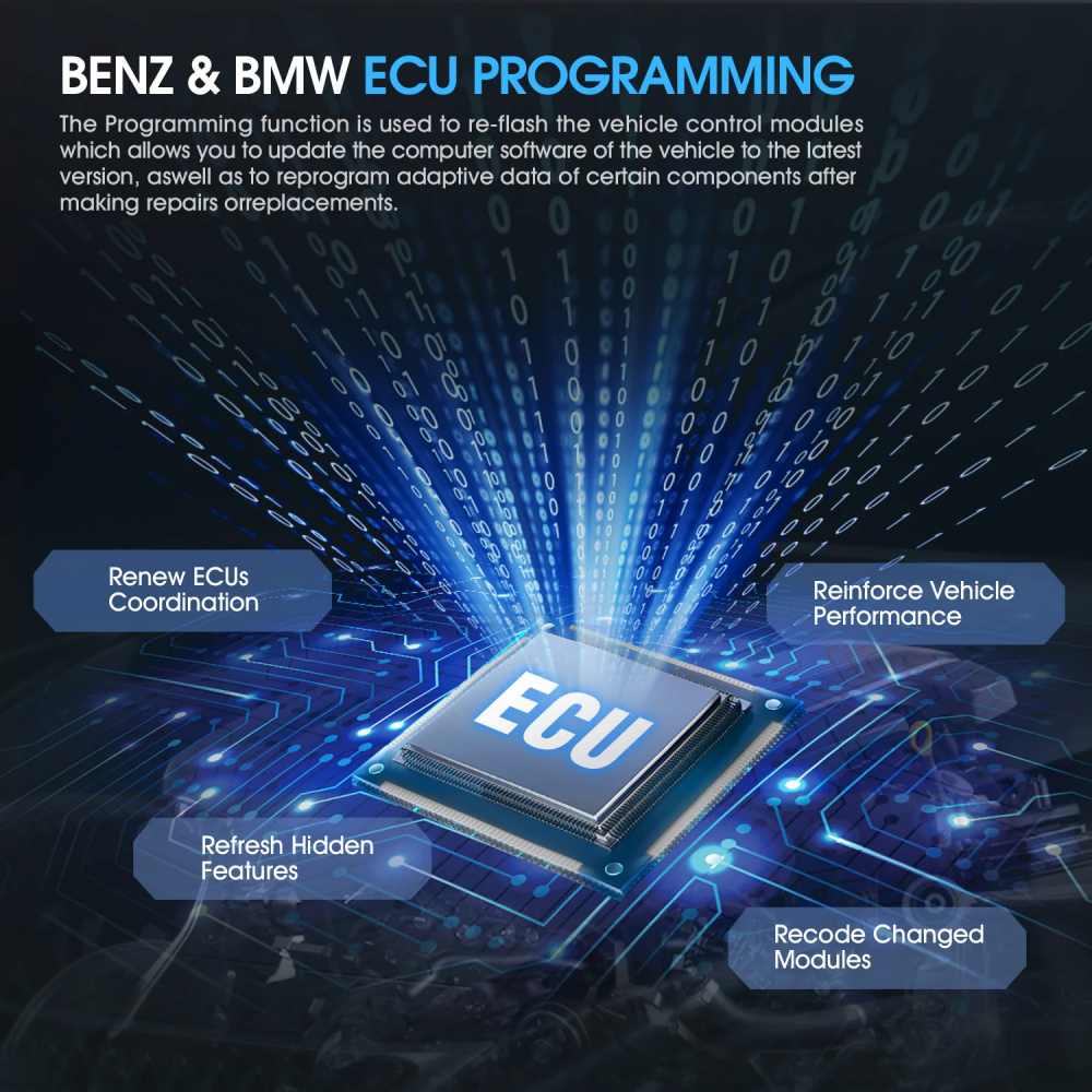 4. Programmation et codage d’ECU:Reprogrammation du nouveau module ECU sur BMW et Mercedes – Benz après remplacement du nouveau module ECU;Effectuez le codage de l’ECU pour que l’ecu préprogrammé corresponde au système embarqué et améliore les performances du véhicule.