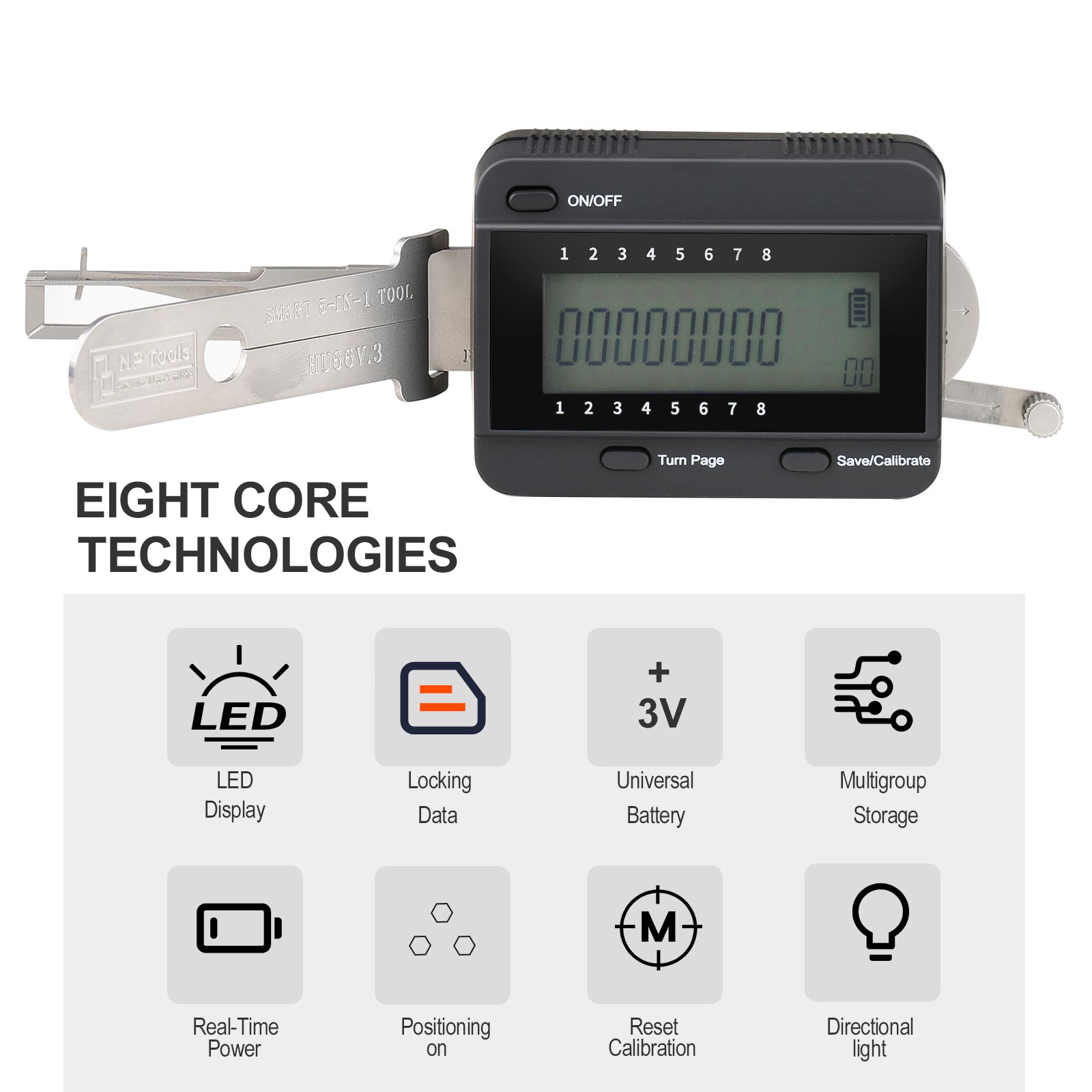 C’est un décodeur intelligent cinq en un outil qui peut effectuer le déverrouillage des données, la lecture de code, le stockage, la correction de la lumière LED.