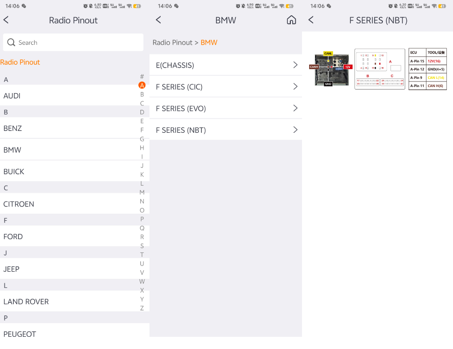 Prend en charge les tableaux de bord, audio, levier de vitesse, panneau AC et autres fonctions de test des marques Audi, Benz, BMW, Dodge, Ford, Jaguar, LAMBORGHINI, Land Rover, Porsche, Rolls – Royce, Volkswagen, Volvo, etc.