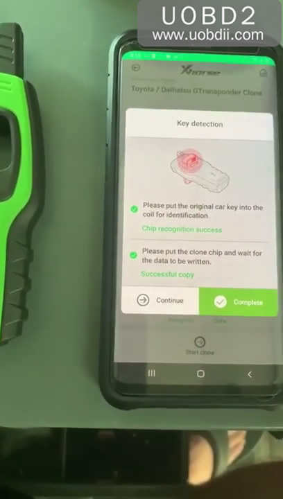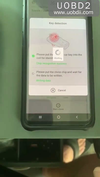 2. Lisez le message original de la clé Toyota G, appuyez sur clone [clone] (émetteur – récepteur).Appuyez ensuite sur recognize [Reconnaître]