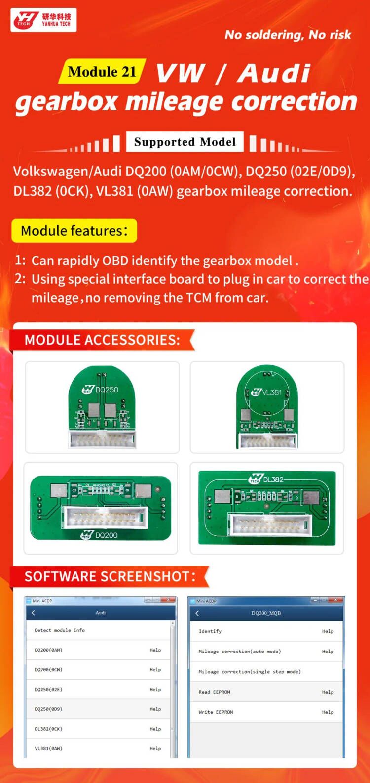 Yanhua Mini ACDP ACDP – 2 module 21 avec licence a605 pour Volkswagen / Audi transmission kilométrage correction