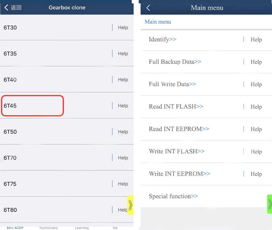 Exécutez la mini – APP ACDP, sélectionnezVoiture générale– Oui.Clone de boîte de vitesses