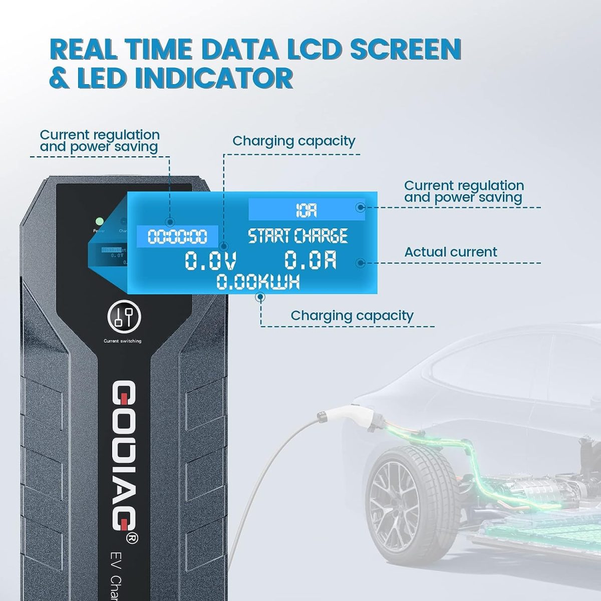 Con l’adeguamento corrente a 4 livelli, può meglio adattarsi a vari modelli nuovi e vecchi sul mercato.Poiché una corrente più adatta è utile per la manutenzione della batteria dell’auto, il caricabatterie EV GODIAG è la scelta perfetta per le tue auto amate.
