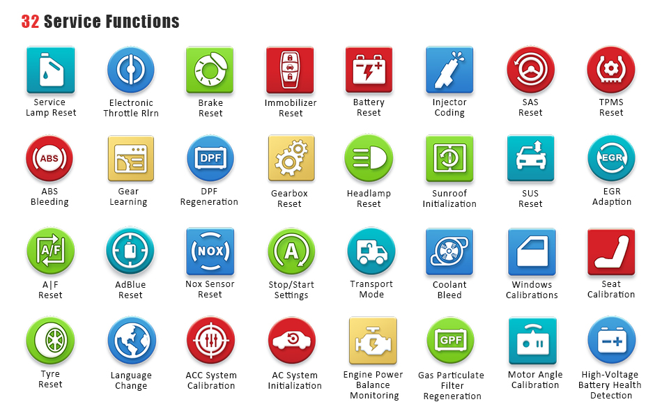 7. Funzioni Speciali supportate:Iniettore, Reset Brake Bleed, Reset TPMS, Electronic Throttle Relearn, Reset DPF, Reset SAS, Reset Oil, Reset Brake, Reset BMS