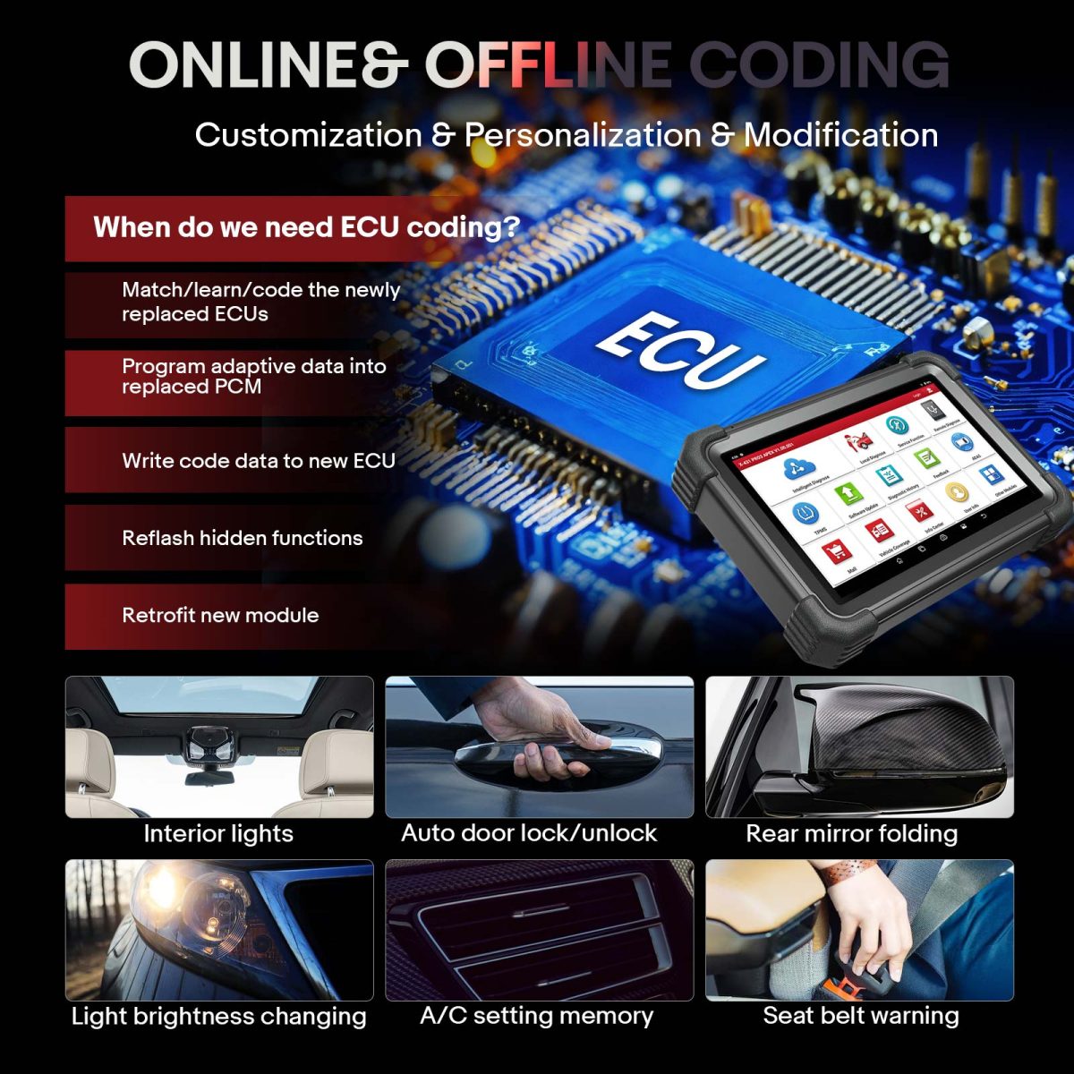 2. Codifica ECU potente, dati di codice abbondanti:1) La codifica ECU è utilizzata per sostituire/match.relearn/ricodificare nuovi moduli;2) Coding Backup/Reverve salva operazione di codifica fallita;3) Codifica Online & Personalizzazione & OE-impostazione Personalizzazione;4) Le funzioni guidate VAG facilitano la riparazione complessa;5) PMI per Mazda/Ford.Nota: Non disponibile per tutti i modelli.
