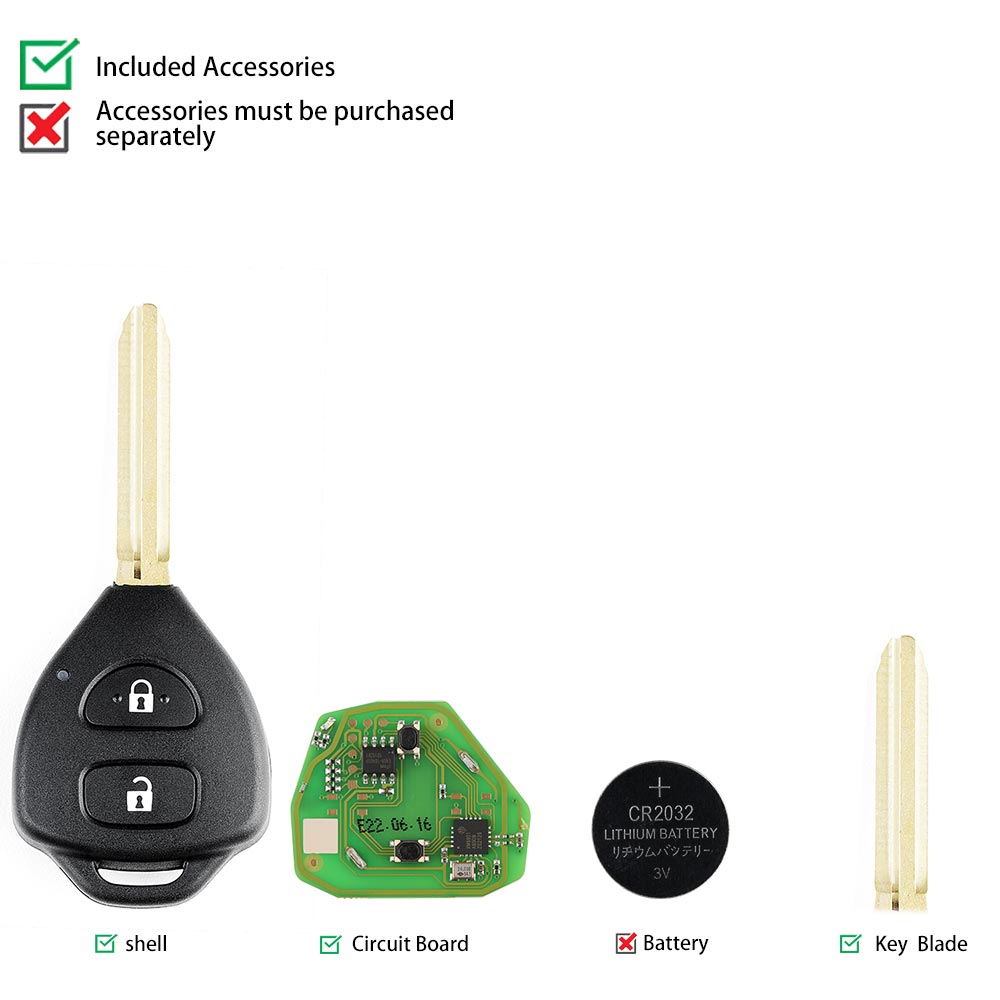 5pc x Xhorse XKTO05EN Cavo Chiave Telecomando Toyota Flat 2 Pulsanti Triangolo Versione Inglese