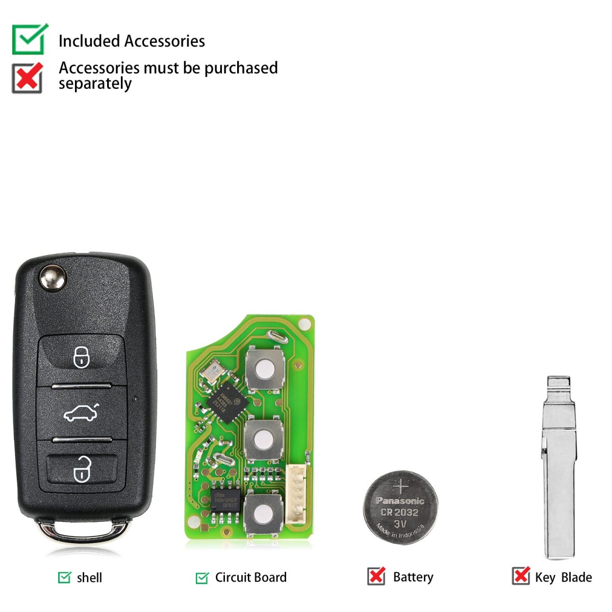 Xhorse XKB510EN Chiave Telecomando Universale B5 Tipo 3 Pulsanti Versione Inglese 5pcs/lot