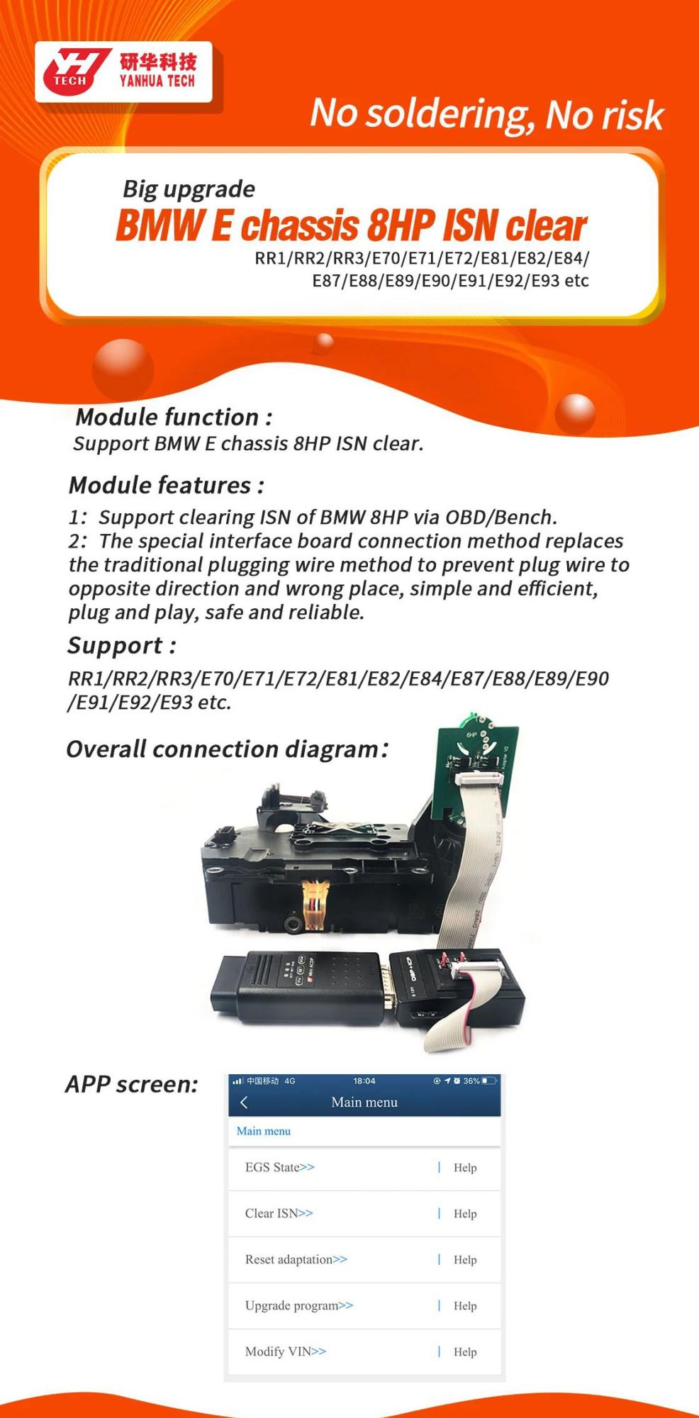 2. Module Function: Support BMW E chassis 8HP ISN Clear