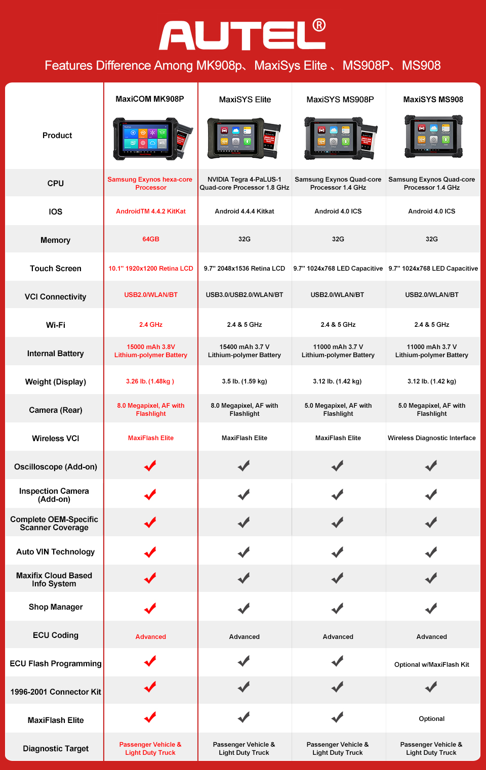 Differences Between Autel MK908P, MaxiSYS Elite, MaxiSYS MS908P and MaxiSYS MS908: