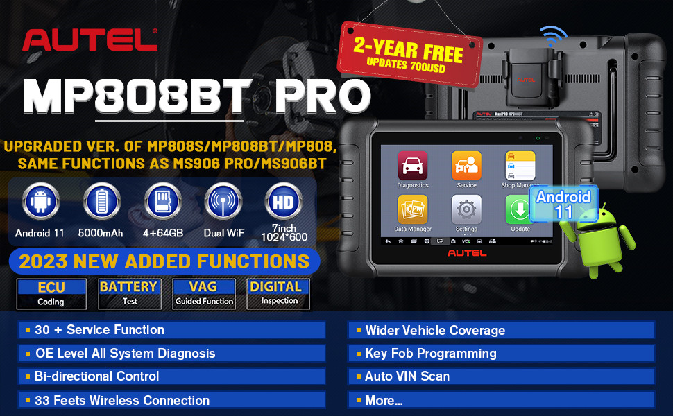 Autel MP808BT PRO diagnostic scan tool, diagnose like an OEM Scanner, shorten the diagnostic time and reduce the diagnostic fee.