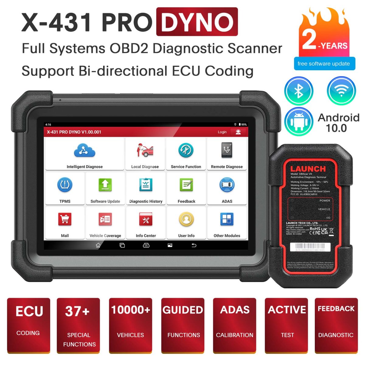 LAUNCH X431 PRO Dyno Is a all-new car scanner, boasts of flagship-level diagnostics, yet at rock-bottom prices! You’ll affordably repair 99% car issues in one solution: ECU Coding, All System Access, Active Tests, 37+ Special Functions, AutoVIN & Scan, Remote Diagnosis, Diagnostic Record & History, 2-Year Update,8 Optional Expanded Tools (ADAS/ Scopebox/ Sensorbox/ Multimeter/ Videoscope/ BST360/ IMMO Programmer/ TSGUN); covering 100 brands, CAN-FD & DoIP.