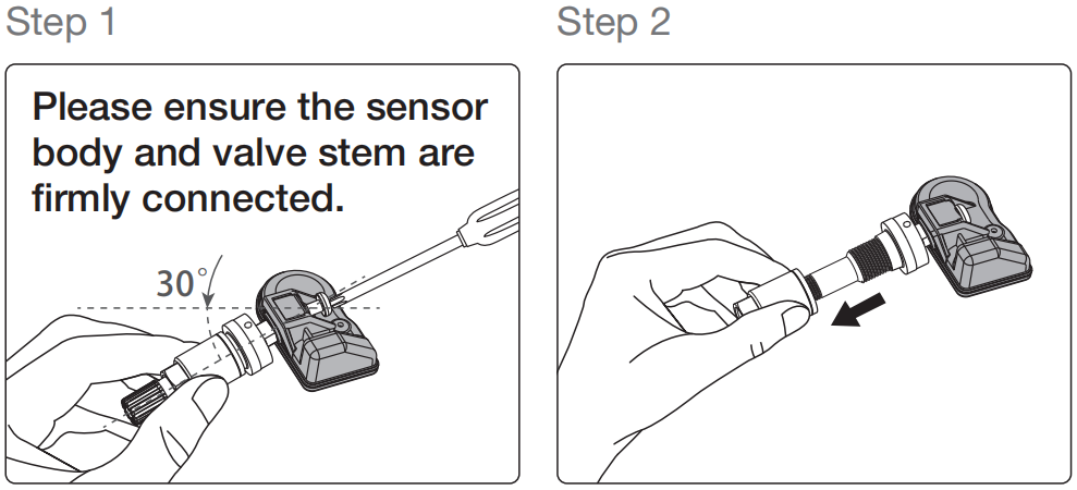 4)インストールが完了したら、元メーカーユーザーガイドに記載されている手順に従って車両TPMSをテストし、正しいインストールを確認する