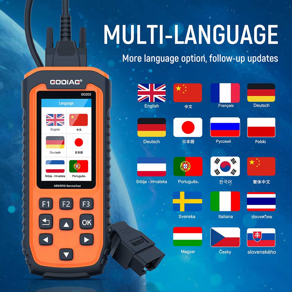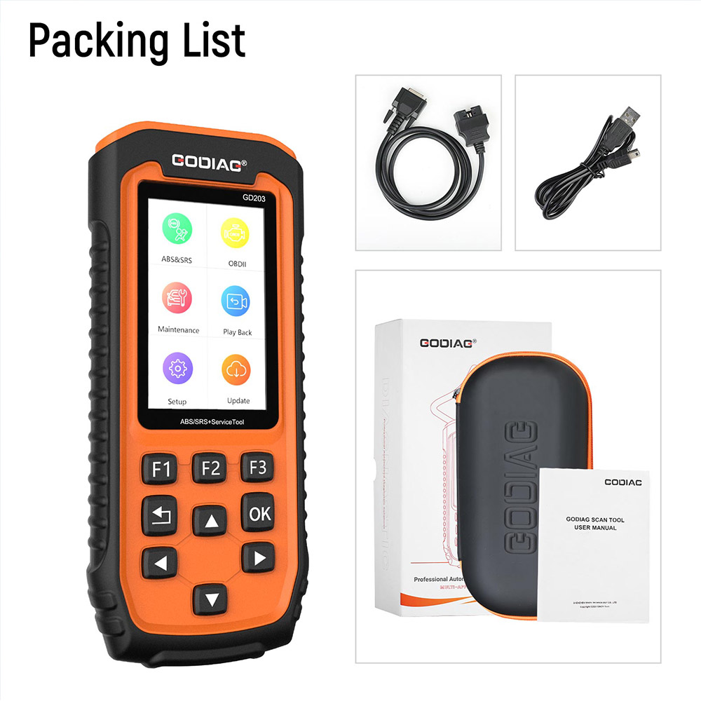GODIAG GD 203 AutoMasterは新型自動車であり、職場、技術者、愛好家に合理的な価格の専門エンジン、エアバッグ、ABS診断ソリューションとより多くの13種類のシステム特殊リセット機能を提供し、特にTPMS、EPB、オイルサービス、ABS、エアバッグ、DPF、スロットルバルブTBA/TPSと電池配置、より広範な車両カバー範囲、より正確な診断、より信頼性の高いパフォーマンス、より優れたユーザー体験を提供することで、さまざまな類似ツールの中で優れています。