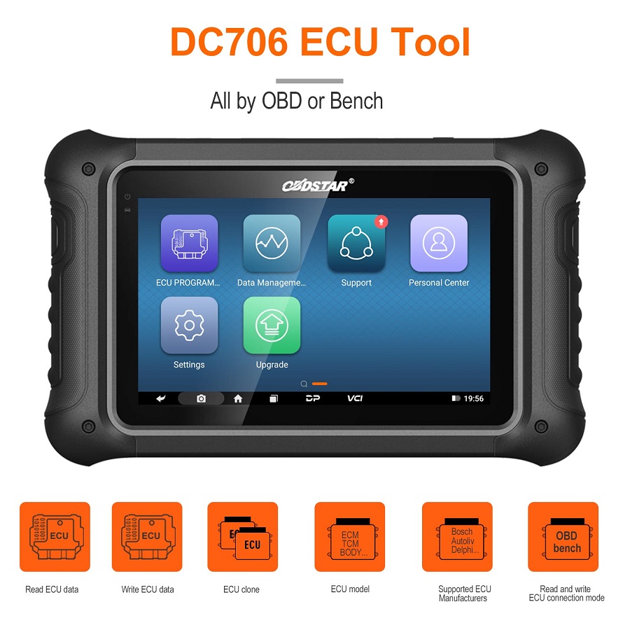 ODSTAR DC 706 ECUツールは、車両ECM、TCM、および車体/その他のシステムのために設計されたECUフラッシュ装置である。ECU情報、R/W Eeprom/Dflash/Pflash/MAP、リセットECU(Virgin)、キャリブレーションマイル、読み取りIMMO pincode、ECUリカバリを読み取ることができます。。これらはすべてOBDまたはラックモードで実現され、ECUのクローン化が容易になります。