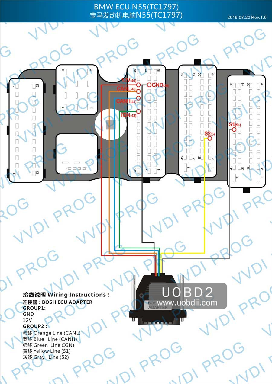 10.Bosch ECUアダプタの助けを得て、開かずにBMW ECU N 20 N 55 B 38 ISNを読み出す