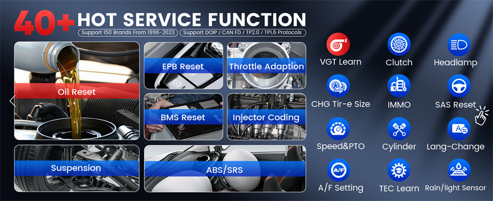 벤츠가 10% 앞섰다: GPF, AD 블루 리셋;2018년까지 포드는 거의 모든 서비스 기능을 커버했고, 2018년 이후 특수 기능 커버리지: BMS, SUSPENSION, BRAKE_BLEED, EPB, ABSSRS, SAS, AIRBAG_RESET;혼다가 10% 앞섰다: 갑작스러운 가속 제어 기능 전환, 여정 센서 검사 등.Posche가 15% 앞섰다: 9YA PSM 제동 전자장치 속도 센서 테스트, air-b-ag 잠금 기능, GM 동작 테스트 및 특수 기능 앞섰다;크라이슬러와 도요타는 각각 경쟁 제품의 15% 와 13% 를 앞섰다.