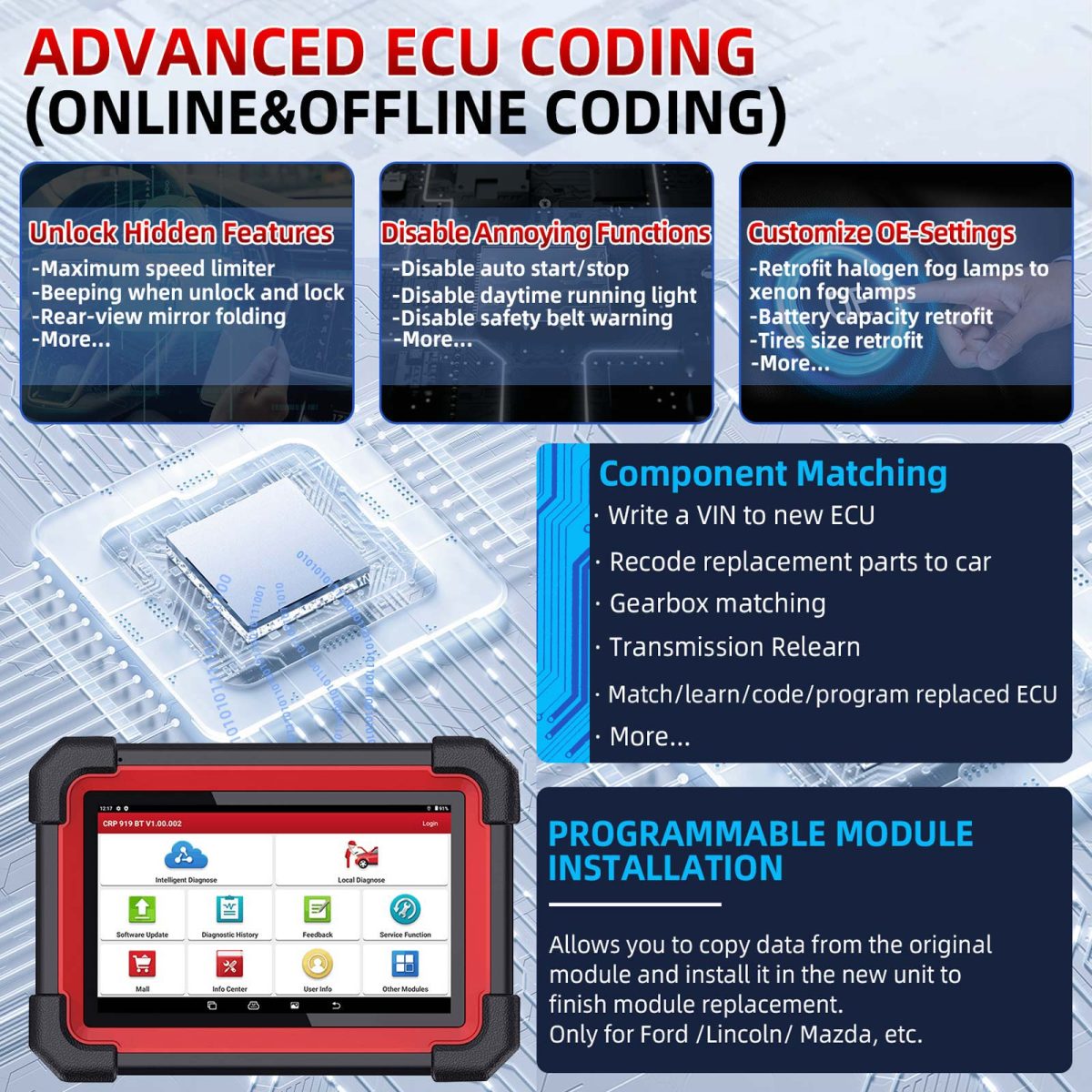 LAUNCH X431 CRP919EBT ECU 인코딩 기능:
