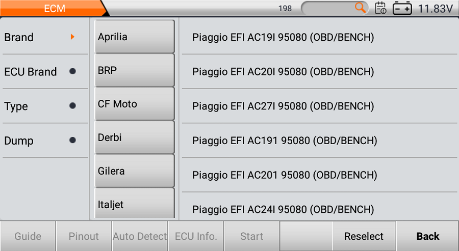 7. Piaggio 시리즈 엔진 ECU 클론 지원(예: MIU G4(M4G1))