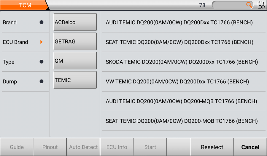 8. 브랜드, 모델, 부품 번호, ECU 제조업체, MCU 컨트롤러 유형별 지능형 검색 지원