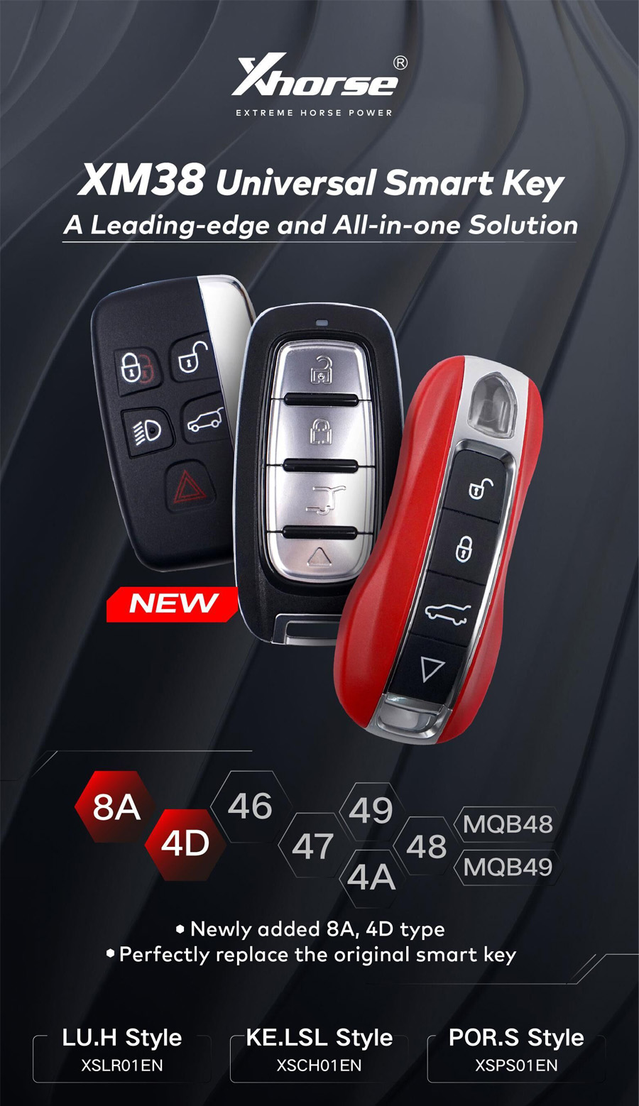 XHORSE XSCH01EN KE.LSL형 XM38 범용 스마트키 5개/배치