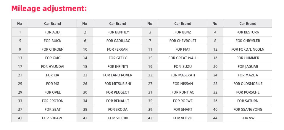 XTOOL EZ400 Pro 차량 목록: