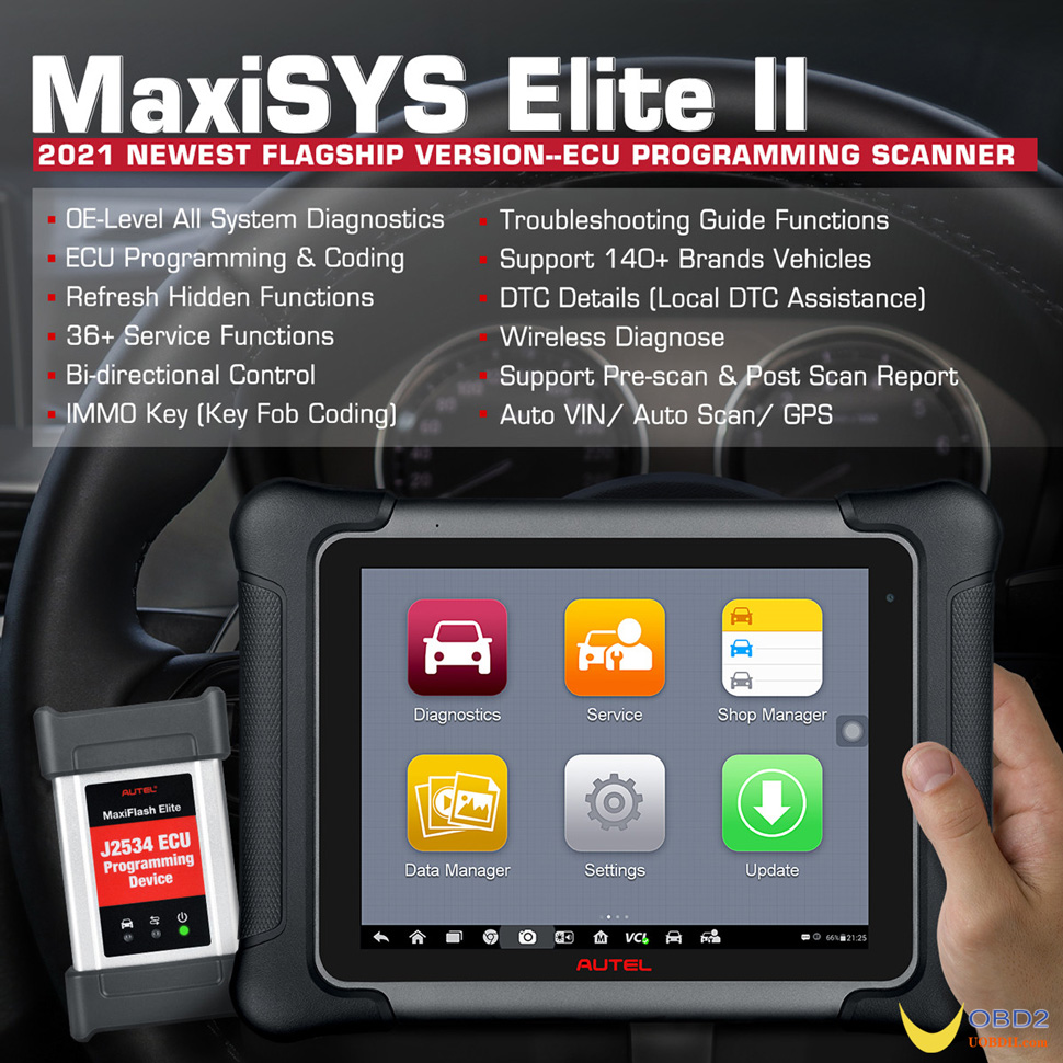 Autel Maxisys Elite II to najnowsza wersja serii Maxisys Elite, która ulepszona z Autel Maxisys Elite.Poprawia sprzęt i oprogramowanie, ten sam sprzęt co MS909, dodaje więcej funkcji rozszerzenia, zastępuje istniejące oprogramowanie/oprogramowanie firmware w jednostkach sterujących, programowanie nowych sterowników dla BMW i Benz, ADAS, oscyloskop, GPS, obsługa chmury MaxiFix itp.