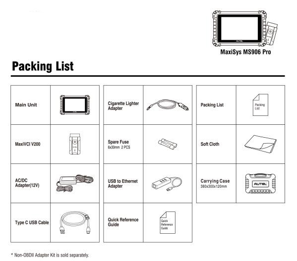 Autel Maxisys 906 Pro Package List: