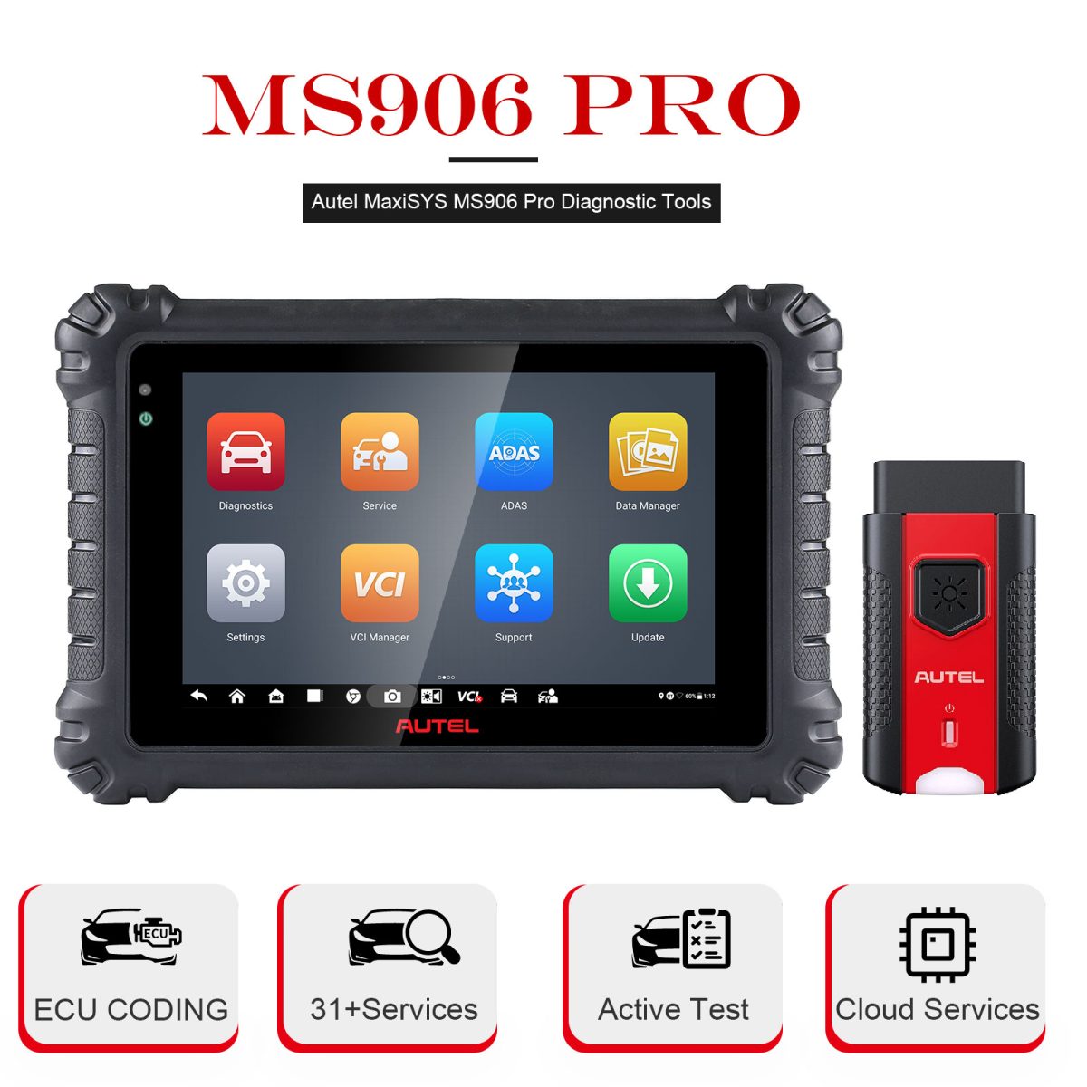 Tablet Autel MaxiSYS MS906pro działa na Android 7 i posiada 8-calowy ekran dotykowy o wysokiej rozdzielczości 1920 x 1200, Octa-rdzeniowy procesor Samsung Exynos z pamięcią 128 GB, długotrwałą ładowalną baterię 11,600 mAh, 5-MP kamerę przednią i 16-MP kamerę tylną. Tablet komunikuje się z pojazdem za pośrednictwem interfejsu komunikacyjnego MaxiCVI V200, który obsługuje najnowsze protokoły komunikacyjne, w tym CANFD.