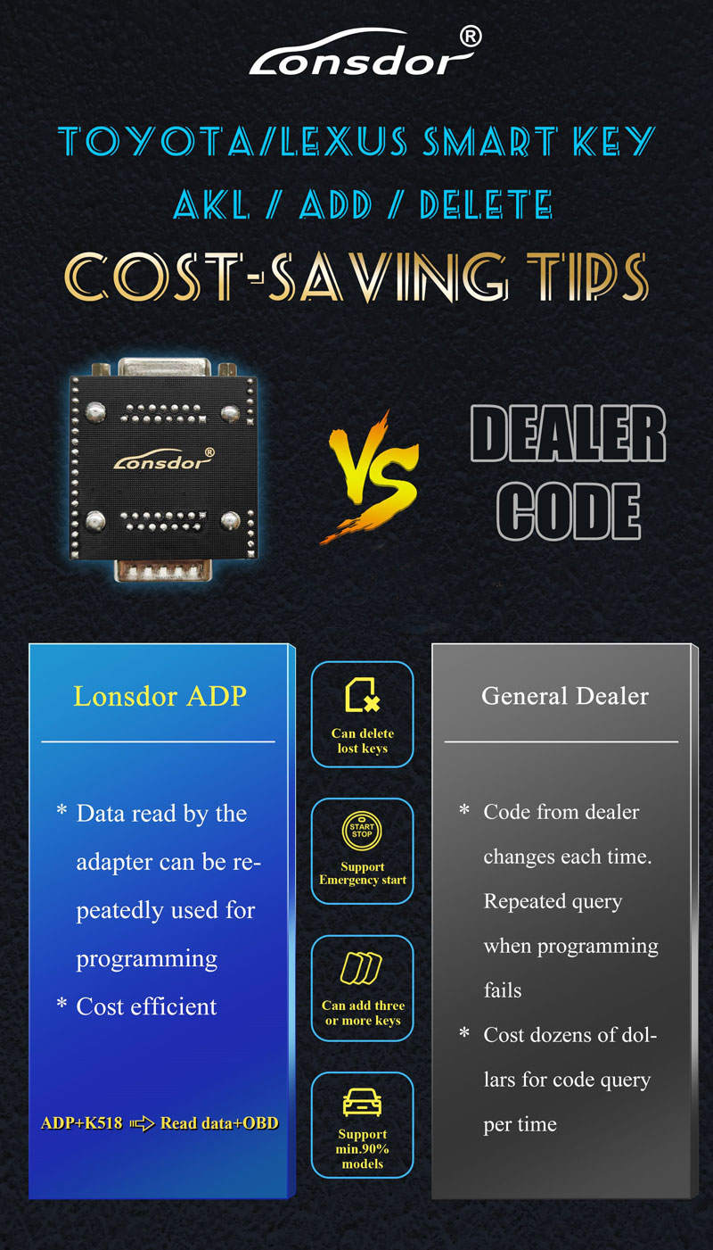 Lonsdar Super ADP 8A/4A Adapter do Toyota Lexus Proximity Key Programowanie Pracy z Lonsdar K518ISE K518S