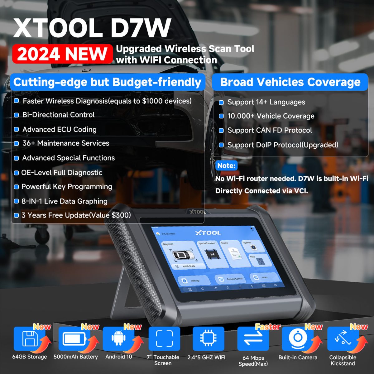 XTOOL D7W D7WIFI Dwukierunkowy Wszystkie systemy Wskaźnik diagnostyczny Programowanie kluczy Wsparcie ECU Kodowanie CAN FD i DOIP 40+ Usługi