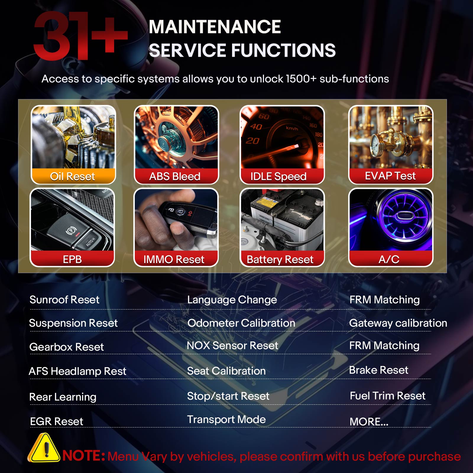 4.31 Funções de redefinição: Uma ferramenta de varredura de LANÇAMENTO é suficiente para reparos comuns.32 serviços combinam reinicialização a quente com suporte completo para carros e funções especiais mais necessárias para carros específicos.