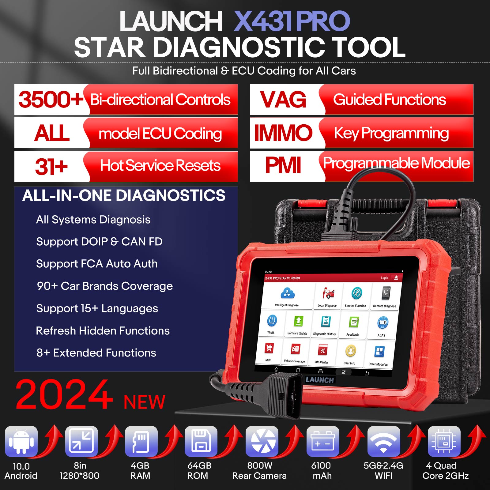 Semelhante a outras ferramentas de varredura de nível OE LAUNCH X431 high-end, o LAUNCH X431 PRO STAR oferece várias funções avançadas: