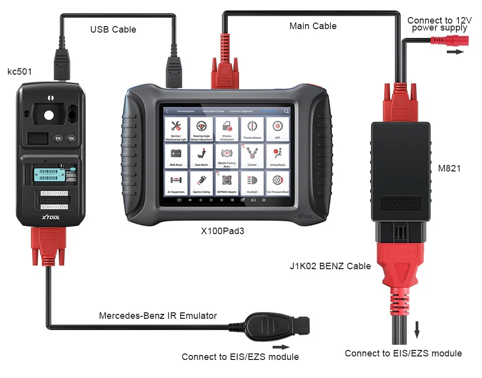 XTOOL M821 M822 Adaptador Trabalho com KC501/X100 Pad3/X100 Max Programador Chave Para Mercedes-Benz Todas as Chaves Perdidas