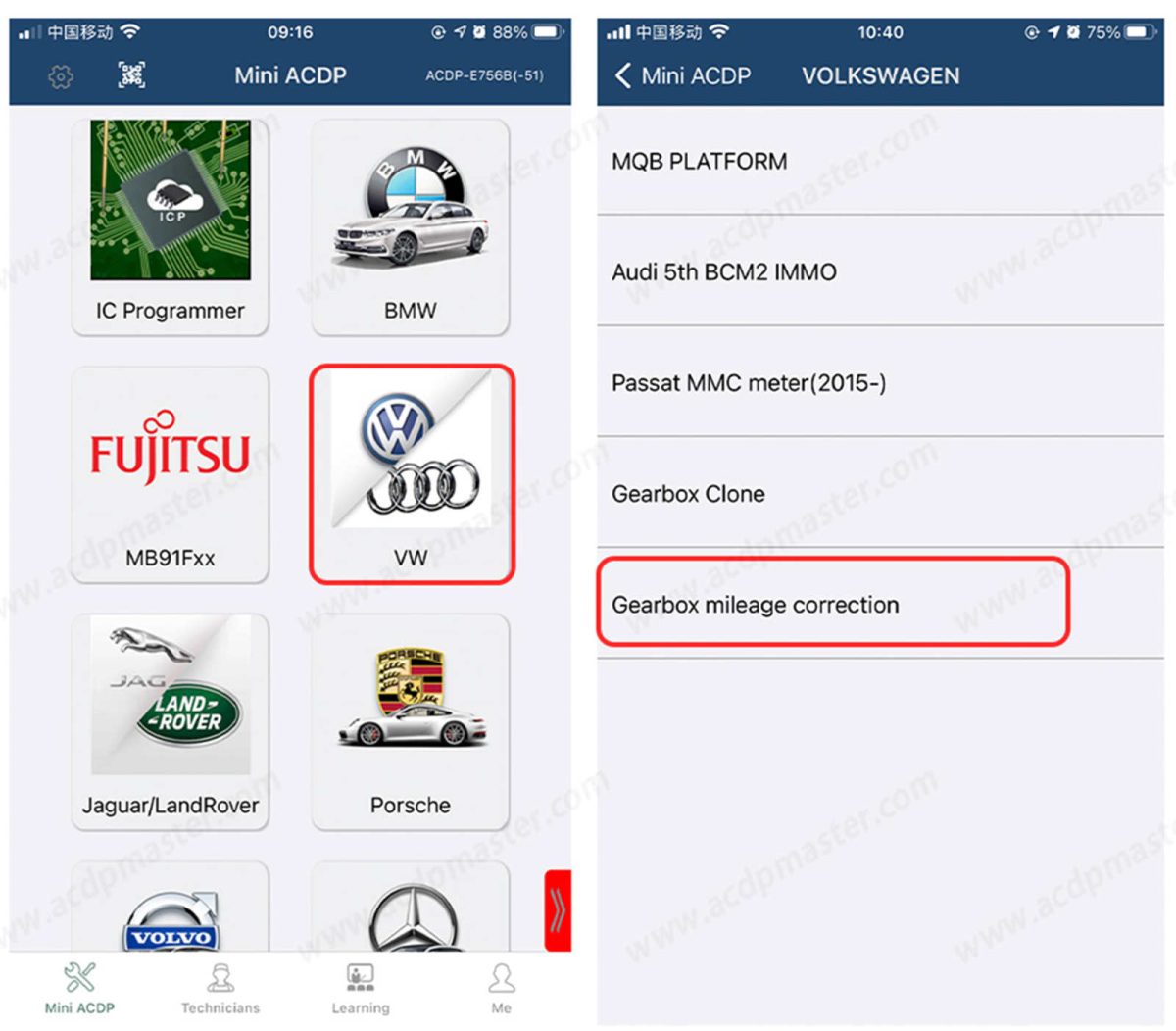 2. se você tem Yanhua Mini ACDP Module19 (SH725XX Clone da caixa de velocidades) ou Module25 (VW/Audi 0DE correção da quilometragem da caixa de velocidades) já, e precisa VW/Audi DQ500 0BH Continental Gearbox função de correção da quilometragem, você pode comprar a licença sozinho