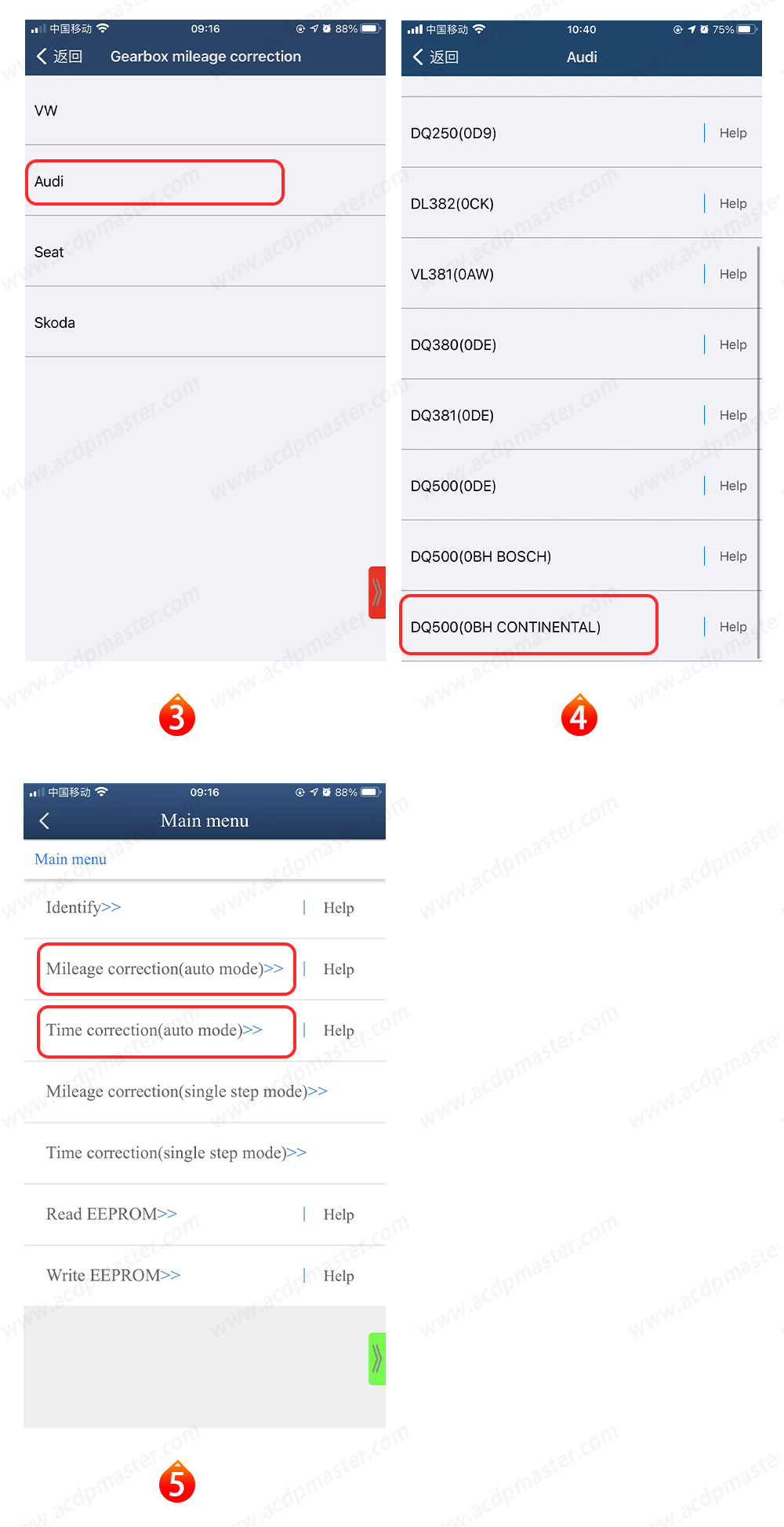 Licença para Correção de Quilometragem Continental da Caixa de Engrenagens VW/Audi DQ500 0BH Trabalhando com Yanhua Mini ACDP Módulo 19 ou Módulo 25