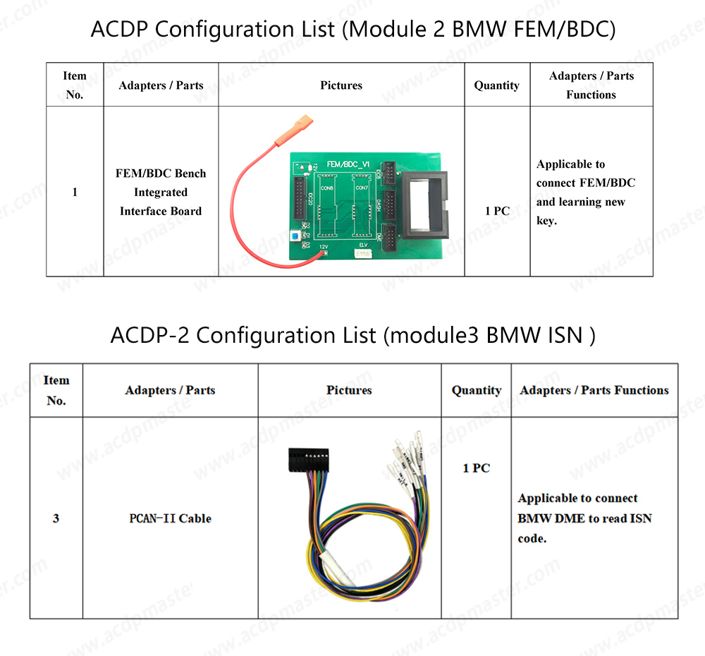 Yanhua Mini ACDP-2 para o pacote FEM/BDC de BMW com módulo 2/3 e placa de interface do banco B48/N20/N55/B38
