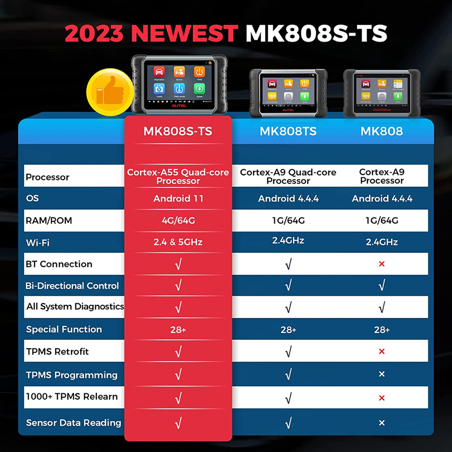 Autel MK808S-TS เป็นแท็บเล็ตสแกน OBD2 ขนาด 7 นิ้วที่มีความสามารถในการทำงานของ OBD2 และฟังก์ชั่นการบริการขั้นสูงในฐานะที่เป็นรุ่นอัพเกรดของ MK808 / MX808 / MK808BTMK808-S / MK808 มีฟังก์ชั่นการวินิจฉัยทั้งหมดและรวมฟังก์ชั่นของเครื่องมือ TPMS ระดับมืออาชีพ TS601 อย่างชาญฉลาดเพื่อดำเนินการฟังก์ชั่น TPMS เต็มรูปแบบคุณอาจประหลาดใจที่ MK808S-TS มีคุณสมบัติทั้งหมดของสแกนเนอร์วินิจฉัยขั้นสูงและเครื่องมือ TPMS หลัก แต่ค่าใช้จ่ายน้อยกว่าการซื้ออุปกรณ์สองเครื่อง