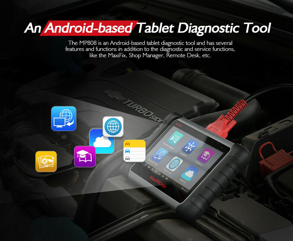 MP808 เป็นเครื่องมือวิเคราะห์แท็บเล็ตที่ใช้ Android ที่มีคุณสมบัติและคุณสมบัติบางอย่างเช่น MaxiFix, Shop Manager, Remote Desk และอื่น ๆ นอกเหนือจากฟังก์ชั่นการวินิจฉัยและบริการคุณลักษณะทั้งหมดเหล่านี้สามารถให้ประสบการณ์การใช้งานที่น่าพอใจแก่คุณและให้การจัดการข้อมูลที่ดีและวิธีแก้ปัญหาที่รวดเร็วแก่คุณ
