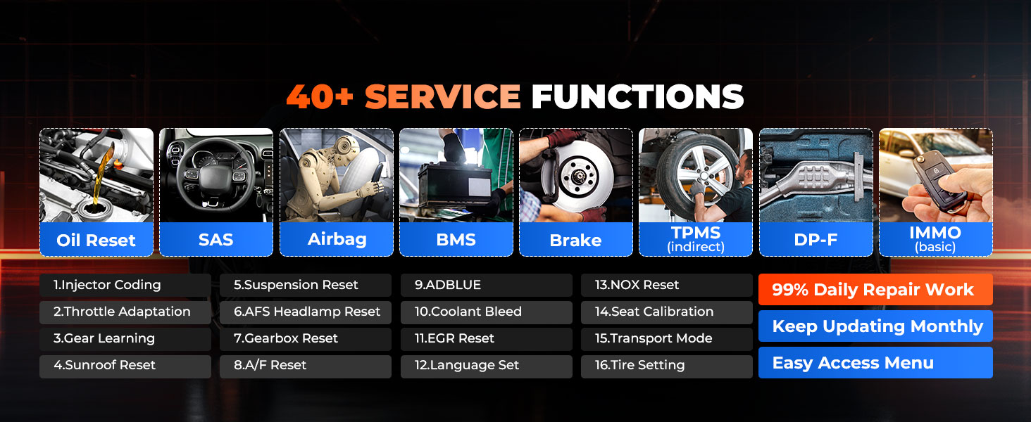 40+ ฟังก์ชั่นการบริการ: ครอบคลุมคุณสมบัติพื้นฐานพิเศษและขั้นสูงทั้งหมดสามารถจัดการบำรุงรักษารถยนต์รายวันได้ถึง 99%